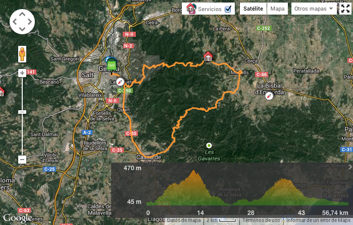 - Cassà de la Selva (Esta carretera nacional dependiendo de la hora está bastante transitada, aunque hay arcén).