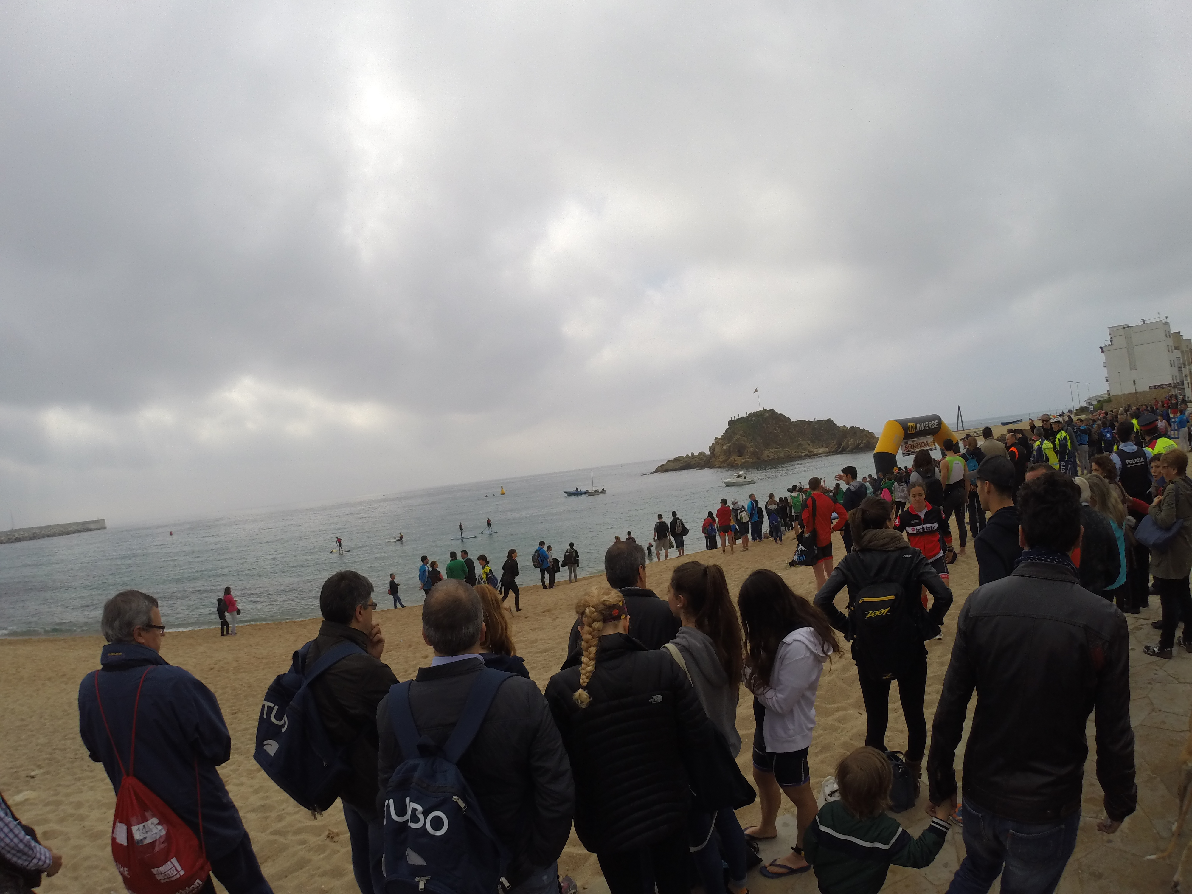 Llegamos a Blanes sobre las 8:30 de la mañana y aparcamos el coche en el parking del pabellón municipal. Fuimos directamente a la playa donde se realizaba el triatlón.